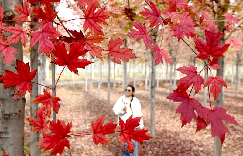 10月22日,游客在河北省邯郸市峰峰矿区义井镇万亩秀林游玩。 新华社发(郝群英 摄)