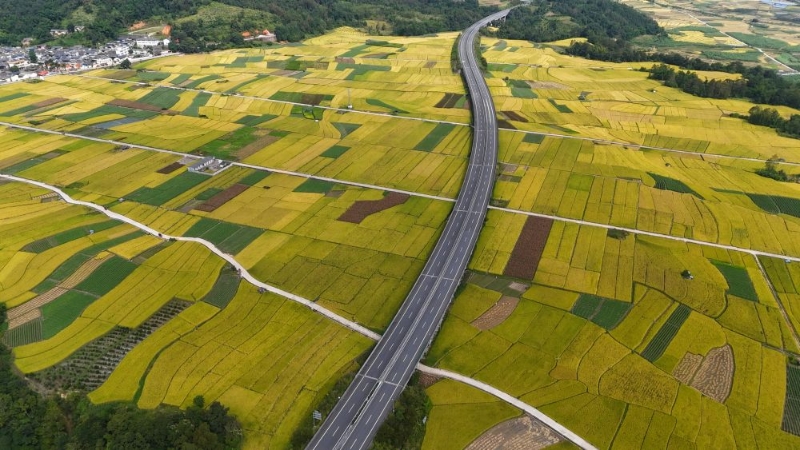 这是10月23日在云南省腾冲市荷花镇羡多村拍摄的稻田(无人机照片)。 新华社发(赵辉 摄)