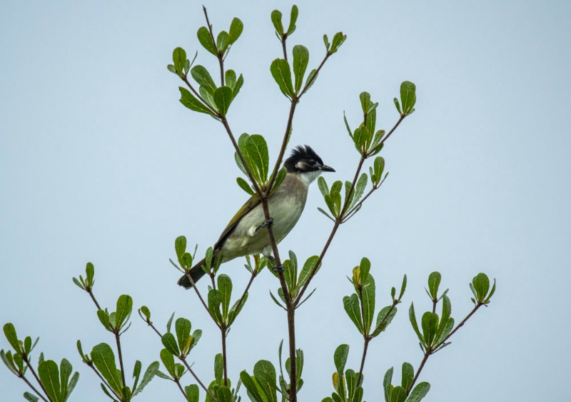 10月23日,在海南省琼海市登仙岭路,小鸟在枝头觅食。 新华社发(蒙钟德 摄)