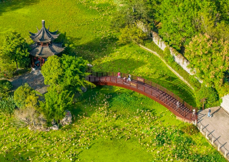 这是10月23日拍摄的江苏南京莫愁湖公园秋景(无人机照片)。 新华社发(杨素平 摄)