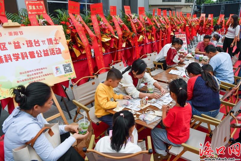 活动现场还有多元互动环节,各年龄层参与者皆能寻趣。琼剧化妆体验区里,每个小朋友都化身“小戏骨”,扮上琼剧造型尽显对传统艺术的好奇;“点心小学堂”同样热闹,专业师傅现场教学老爸茶经典点心制作,参与者动手实践,很快香气四溢的点心便新鲜出炉,大家边品尝边听市井文化讲解,收获满满。“益・琼台π博士”文明实践活动也人气十足,“手摇发电机”体验加深了亲子互动,孩子们在亲手操作中,学习发电原理。多样活动让游园时光充实又有意义。