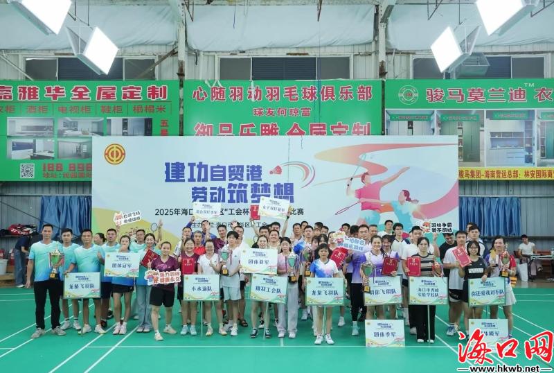 海口网10月27日消息(记者王誉霖 符德铭)10月26日下午,为期四天的2025年海口市龙华区“工会杯”职工羽毛球比赛在隆飚羽毛球馆圆满收官。本次赛事吸引了全区近500名工会会员踊跃参与,组成32支团体队伍与96支单项队伍同场竞技,充分展现了龙华职工团结拼搏、积极向上的精神风貌。
