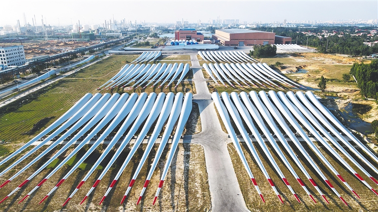 10月24日,东方临港产业园内的东方明阳科技新能源有限公司高端装备制造产业基地,众多巨型白色叶片有序排布,正等待通过陆运、海运多式联运运往全国各地风电场。据悉,这座总投资20亿元的产业基地目前已进入规模化生产阶段。海南日报全媒体记者 陈元才 摄
