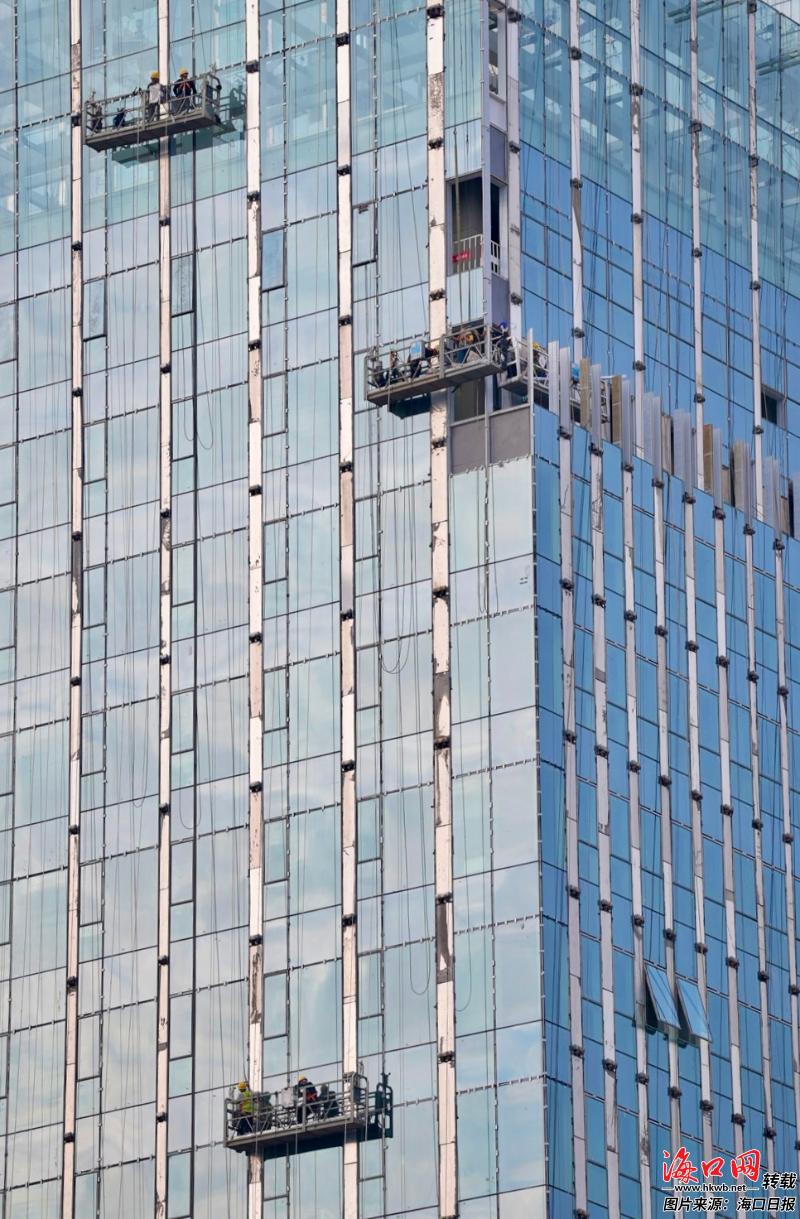 10月26日,在位于海口西海岸的中国海油深海能源开发总指挥部基地项目现场,工人正有序开展外立面装修。据悉,该项目计划于2025年底完工,2026年6月投入使用。