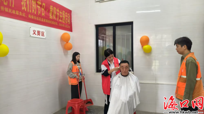 海口网10月30日消息(记者杨玲 特约记者陈创淼)秋雨潇潇,人心暖暖。2025年重阳节,秀英区海秀镇各村居精心组织开展了一系列形式多样、内容丰富的敬老爱老活动。热闹不断的趣味游园、贴心周到的健康义诊、技术娴熟的爱心义剪、温情满满的走访慰问,活动中老人们可爱的笑脸汇聚成节日里最动人的风景,也成为海秀镇基层治理中自治、法治、德治“三治融合”的生动缩影。