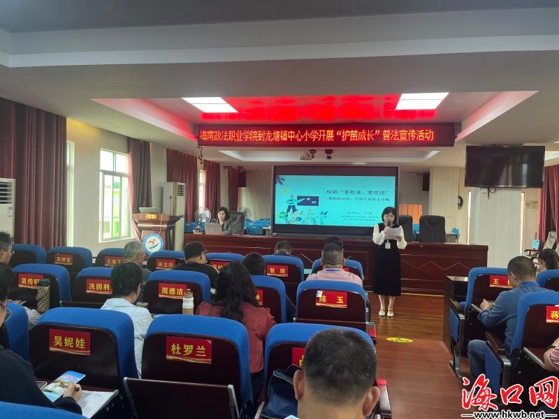 青少年是普法教育的核心群体。为切实加强青少年普法宣传,培养其“学法、知法、懂法、用法”的能力素养,龙塘镇创新普法模式,携手海南政法职业学院,为龙塘中学、龙塘中心小学全体师生开展“全覆盖、定制化”普法活动。