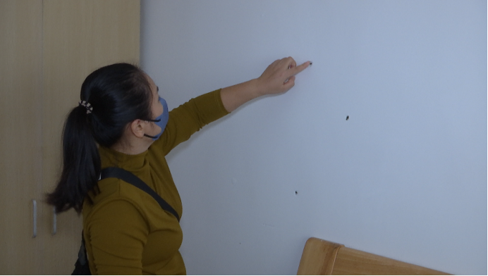 业主 黄女士:年初3月份的时候,我就已经发现这个问题了,报给物业,物业说报给开发商,接着说开发商、施工方已经撤走了还没回来。后面我看到问题(加重),我就找了楼上的业主,(楼上的业主)说这个还没有过质保期,叫我找开发商还有物业,但是我找了也没有给我任何回应。住建局的人过来看过,但是也没有解决,跟我说7个工作日跟我修复,接着又说7个工作日,我从3月份等到现在,多少个工作日了。