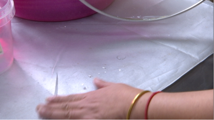 黄女士介绍,出现漏水问题后,施工方曾经安排过一次施工,在楼上业主的阳台地板上使用防水胶填补缝隙,填补后黄女士家的生活阳台没有明显漏水迹象,但随着时间推移,她发现天花板仍出现起皮或起鼓的情况,每天都需要清扫掉落的墙皮。