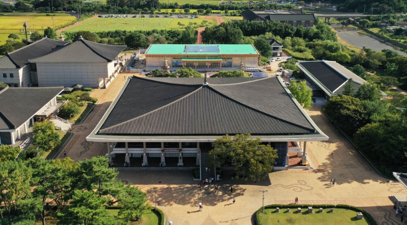 这是9月20日拍摄的韩国庆州博物馆(无人机照片)。新华社发(朴晋泽摄)