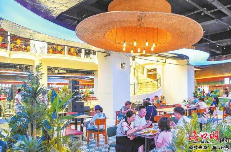 市民游客在位于海口骑楼老街水巷口的夏南洋·骑楼烟火食集内就餐。