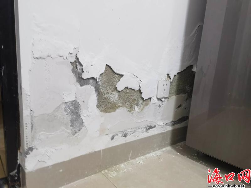 海口网11月8日消息(记者史子杨 晁聪 摄影报道)近日,海口市龙华区八灶新城小区业主反映,其回迁安置房出现墙皮脱落、渗水漏水、内墙发霉等问题。业主多次向物业报修,却长期未获得施工总包单位的实质性响应。一些业主的报修记录已积压近两年,始终未等来上门维修。