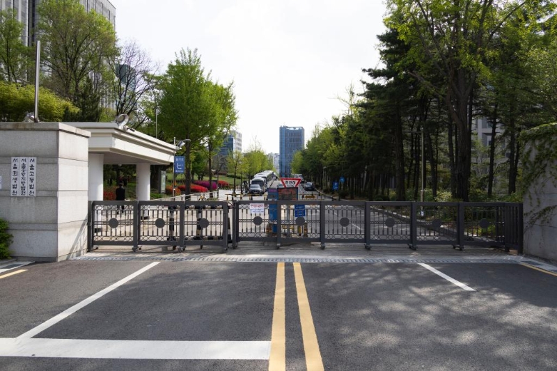 这是4月21日拍摄的韩国首尔中央地方法院门口。新华社发(全休相摄)