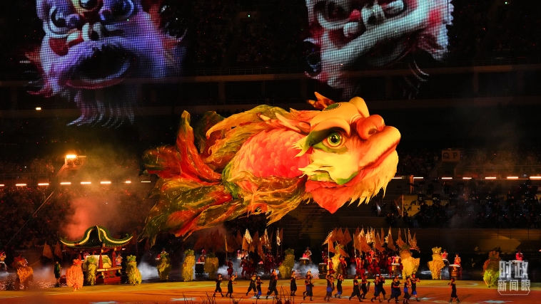粤港澳大湾区作为全国科技重镇,传统岭南文化与前沿科技深度融合成为本届全运会开幕式的一大亮点。醒狮表演与人工智能技术相互交融,英歌锣鼓搭配全息投影,龙舟竞渡场景通过AR技术“划”入观众席,一场“古今对话”的沉浸式艺术盛宴“燃动”全场。粤剧、咏春、麒麟、广绣、嵌瓷等璀璨的岭南文化符号巧妙融入,赋予开幕式独特的岭南神韵。