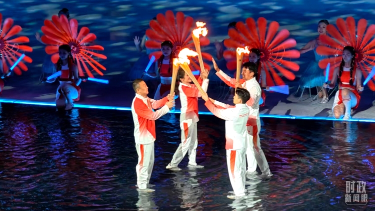 △第十五届全运会主火炬点燃环节。(总台央视记者范一鸣、蒋硕拍摄)