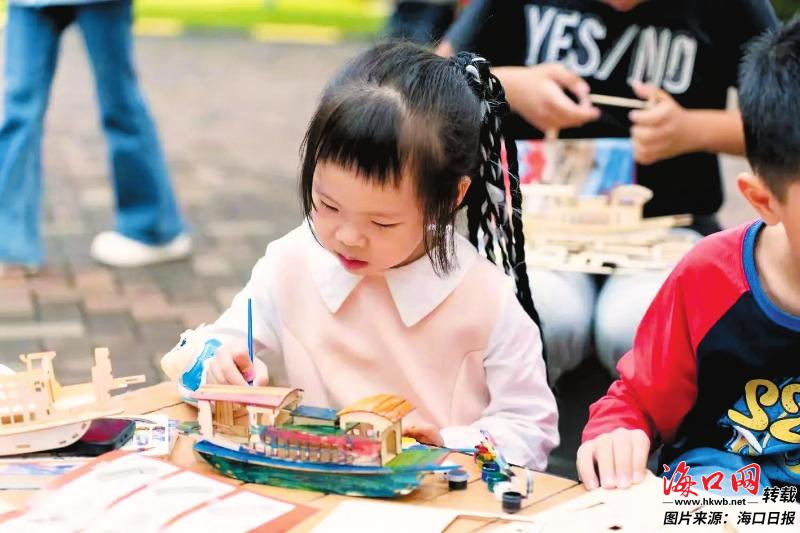在随后的红色木船手工制作环节中,孩子们根据志愿者和家长的指导,专注地裁剪、折叠、粘贴,一步步将零散的材料变成一艘艘寓意深远的红色小船。孩子们发挥创意,为小船点缀色彩、绘制图案,既锻炼了动手能力,同时也让红色基因在指尖传承。
