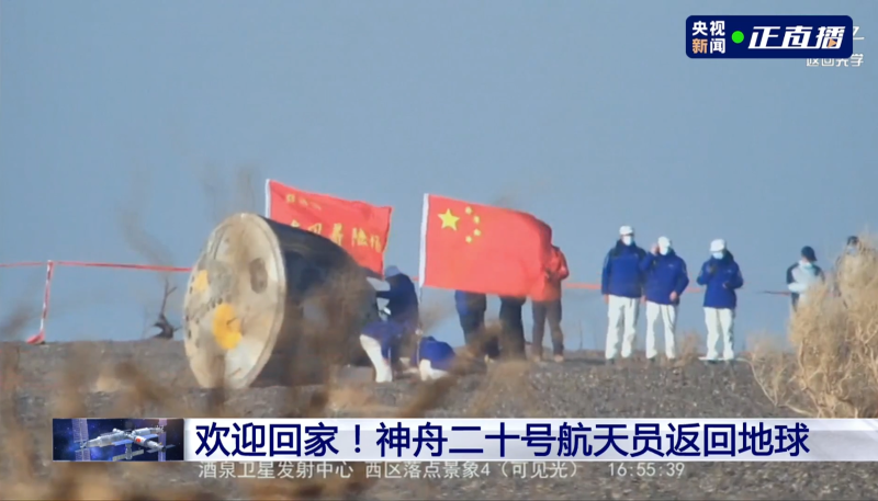 14时49分,北京航天飞行控制中心通过地面测控站发出返回指令,神舟二十一号载人飞船轨道舱与返回舱成功分离。之后,飞船返回制动发动机点火,返回舱与推进舱分离,返回舱成功着陆,搜救分队及时发现目标并抵达着陆现场。返回舱舱门打开后,医监医保人员现场确认神舟二十号乘组航天员陈冬、陈中瑞、王杰身体状态良好。