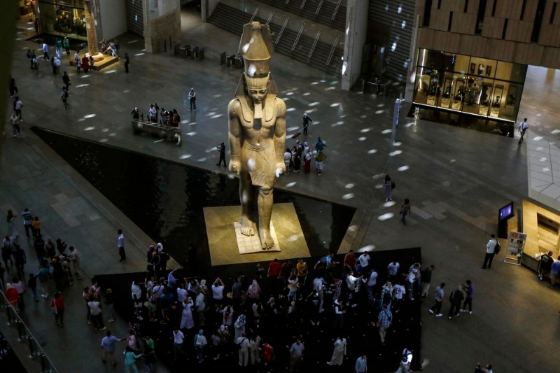 高达11米的拉美西斯二世巨像,拥有4500多年历史的胡夫太阳船,古埃及法老图坦卡蒙的黄金面具……大埃及博物馆4日正式开馆当天一早,中国游客王治国就赶到位于埃及首都开罗西南吉萨金字塔附近的博物馆参观。展厅内人头攒动,首日参观人数就达到约1.8万。“这是埃及的一张文化名片。”他说,“如今中埃之间不仅旅游、商贸往来热络,文化交流活动也是丰富多彩。”