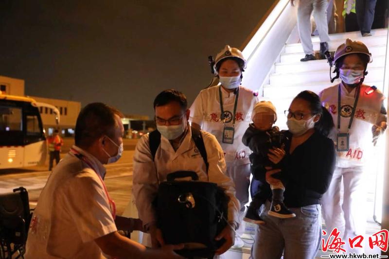 蒙古国1岁多的慢肺患儿小德尼(化名)和家人抵达海南。(海南现代妇女儿童医院供图)
