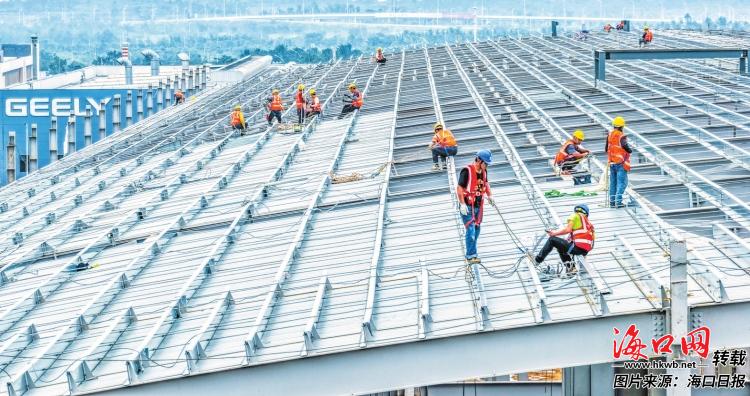 连日来,位于海口国家高新区美安生态科技新城的农夫山泉天然饮用水及饮料生产基地项目建设加速推进。现场施工人员紧密协作,有序进行主体钢结构吊装与屋面钢板安装作业。目前,项目主厂房主体钢结构完成超七成。