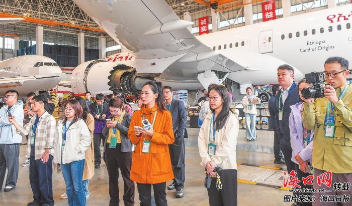 “亲眼见到全球航司纷至沓来,我具象化地感受到了海南自贸港的蓬勃发展态势。”河南广播电视台大象新闻记者徐珂一边拍摄视频素材,一边感慨,“昨天发布的海口探访视频已经收获大量关注,相信今天这些飞机维修的‘硬核’视频,一定会让网友们眼前一亮。”