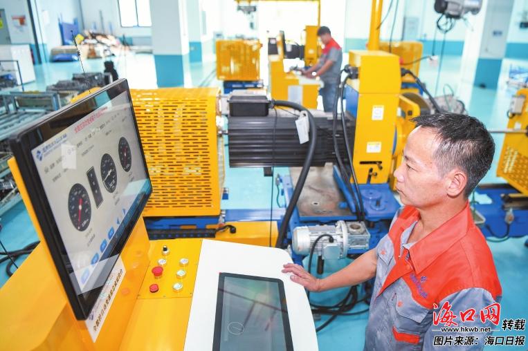 11月17日,在位于海口综保区的中车国际车辆产业(海南)有限公司,工作人员正在检测、维修一批来自境外的汽车变速箱。