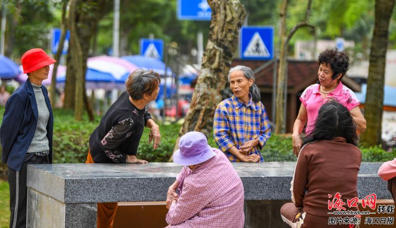 日前,琼山区新落成的“口袋公园”振发小游园成为周边居民日常休闲的好去处。这是一座以“变废为宝”的巧思诠释绿色理念的“口袋公园”:石笼座椅由废弃水泥块再造而成,旧轮胎被改造成休闲椅,配合透水步道与固碳绿植,共同构建出一片低碳宜人的休憩空间。图为居民在振发小游园内休闲聊天。