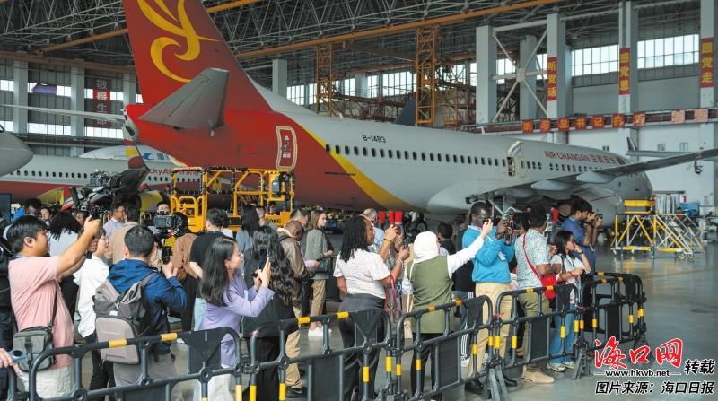 “飞机进境维修免保证金、暂时进境维修允许内销、维修航材保税等政策红利可以为企业节省10%至15%的成本。基地目前已承接卡塔尔航空、约旦皇家航空等20多家境外公司的百余架次进境飞机大修和喷涂业务……”伴随着飞机维修基地相关负责人的介绍,记者们手中的镜头转动,海南自贸港的开放活力跃然屏上,将这片热土的政策优势解读给世界各地人民。新海航海航技术旗下大新华飞维空港维修基地副总监杨文博的数据分享引人关注:“自2022年投产至今年10月,新海航海航技术已完成超2400架次飞机维修、超280架次整机喷涂及6.1万件航空零部件维修。”