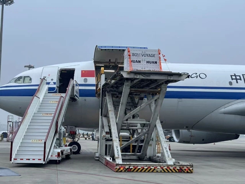 △2025年11月26日旅法大熊猫“欢欢”“圆仔”平安回国。
