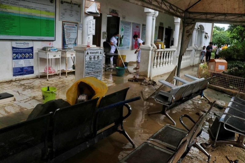△菲律宾宿务省的一所医院在进行洪水后的清理工作。