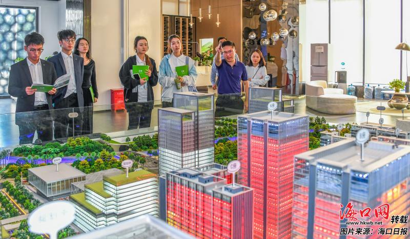 11月26日,第十二届中国青年创青春大赛(数字经济专项)参赛选手在海口复兴城参观。 记者 康登淋 摄