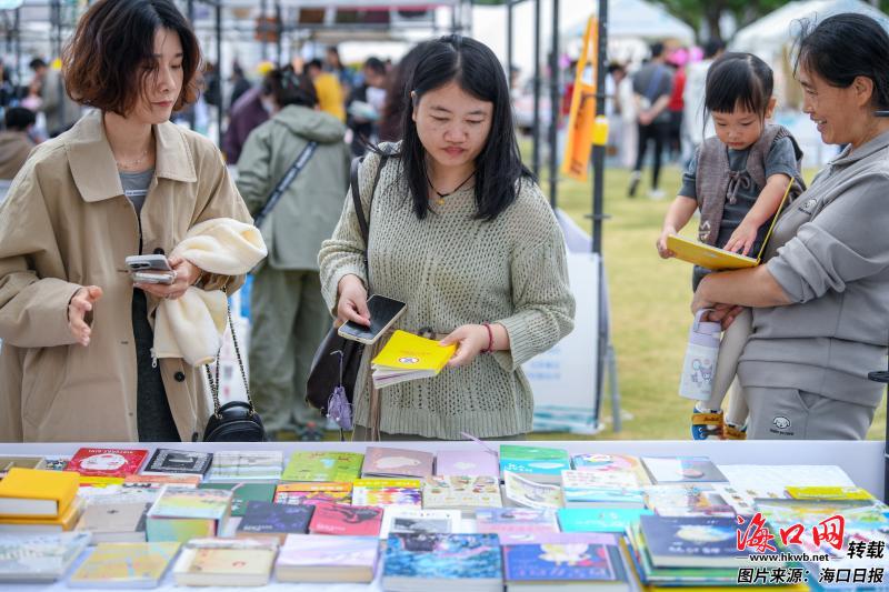 当天上午,记者在市集现场看到,各摊位上摆满了琳琅满目的图书、文创产品等,吸引不少市民游客驻足选购。“我们带来了读库的全系列特色产品,包括童书品牌‘读小库’、漫画子品牌‘漫编室’等,希望通过活动与海口的读者共享阅读之美。”读库&走马Cube摊位负责人杨宇说。