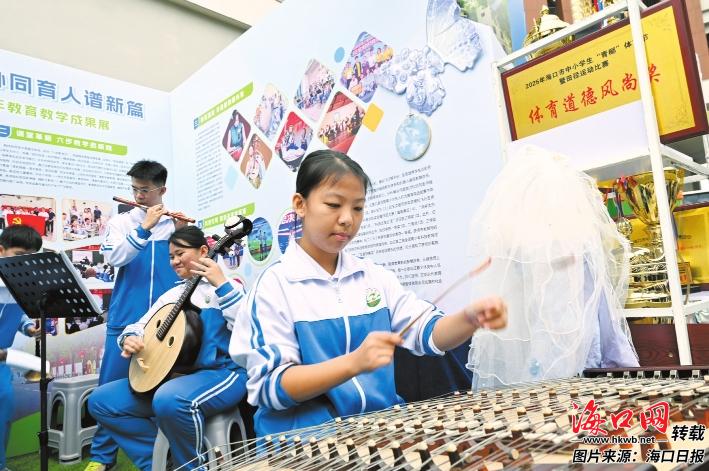 灵山中学八音小组用传统乐器奏响海南特色韵律。