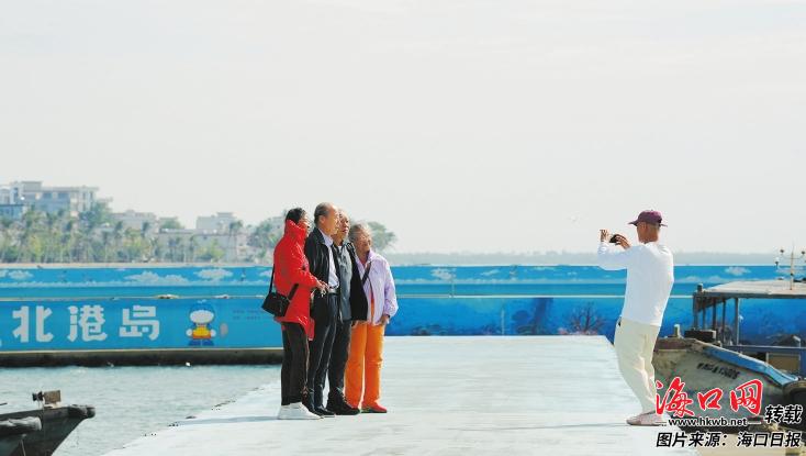 当前,海南岛迎来旅游旺季,各地游客纷纷前来游玩。图为11月22日,游客在海口北港岛海边拍照打卡,享受舒适气候与滨海美景。记者 杨忠凯 摄