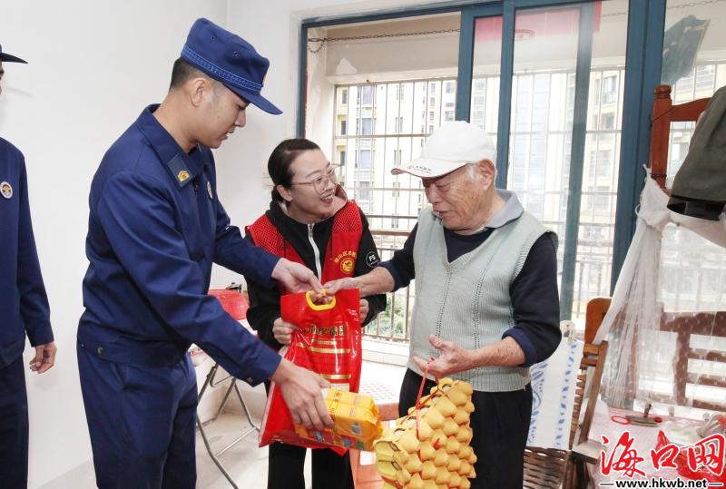 海口网12月2日消息(记者杨玲 通讯员王咪)冬季气候干燥,是火灾的高发期,而孤寡老人因行动不便、消防安全意识相对薄弱,用火用电安全成为他们生活中潜藏的重大隐患。11月25日与27日,琼山区消防救援大队联合琼山区志联、国兴街道、滨江街道,深入各个社区,以“安全护航+温暖陪伴”的形式,为19名孤寡老人送上关怀的同时,进行消防安全宣传。