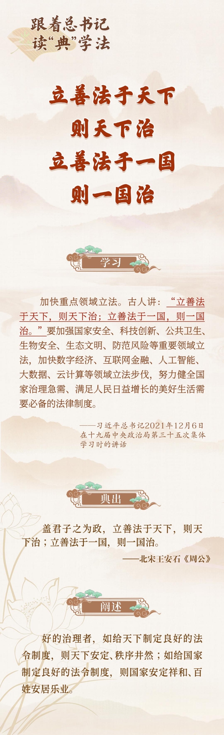 2025年全国“宪法宣传周”,法治网《跟着总书记读“典”学法》栏目,诚邀您一同品读《习近平法治文选》第一卷中的法治典故,照鉴古今智慧,汲取思想伟力,共赴法治新程。