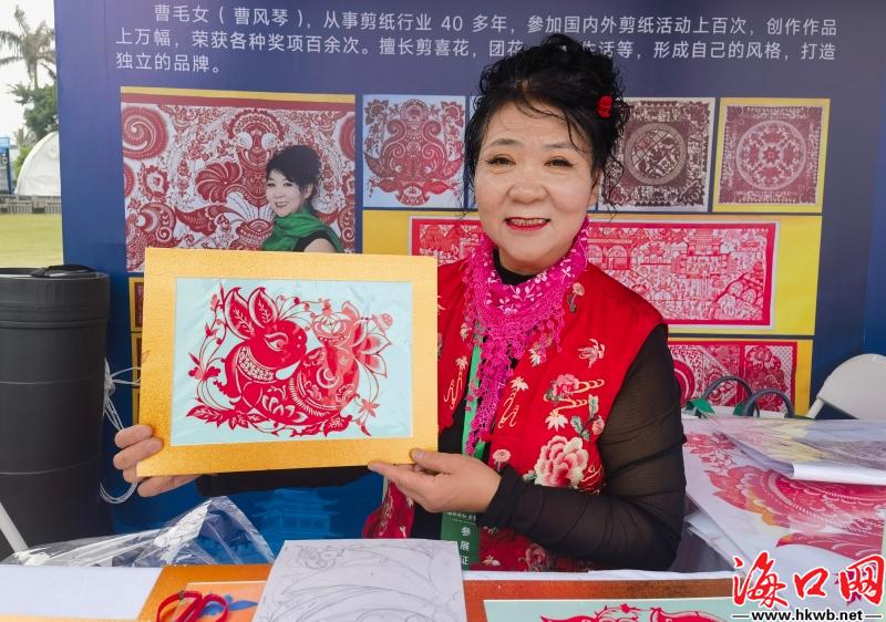 现场的“榆阳好产品”展销区汇聚了羊绒产品、翰林文创、石雕艺术品、山地苹果等众多特色好物,各个展位用心推荐各类“榆阳好物”,将地道的“榆阳味道”推荐给海口的消费者。