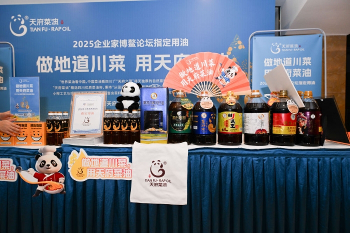 12月2日至5日,2025企业家博鳌论坛在海南博鳌举办,四川省级区域公共品牌“天府菜油”凭借其高品质成为本届论坛指定用油,并携旗下系列菜油产品及文创精品亮相现场。