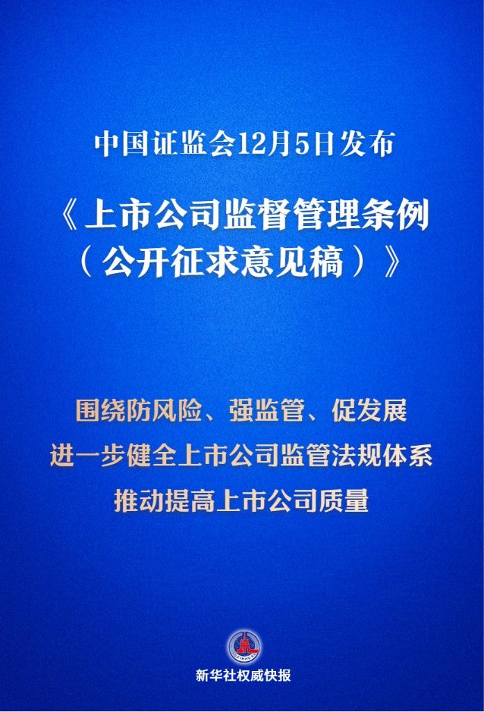 中国证监会5日发布《上市公司监督管理条例(公开征求意见稿)》,我国将迎来首部专门的上市公司监管行政法规。