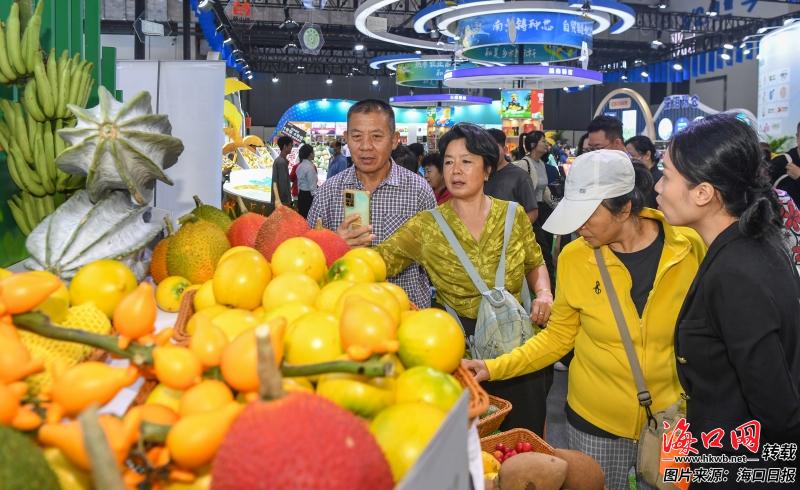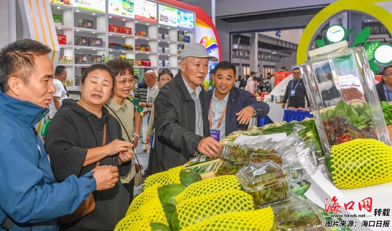 大坡胡椒、演丰咸鸭蛋、潭牛文昌鸡……海口本土优质农产品在展会上大放异彩。在“椰城香见”品牌馆,种植面积约1.2万亩、年产值破亿元的金钻凤梨,凭借饱满的果肉与香甜的风味俘获众多食客味蕾,成为展馆内的“人气单品”,让海口本土特色农产品持续“出圈”。
