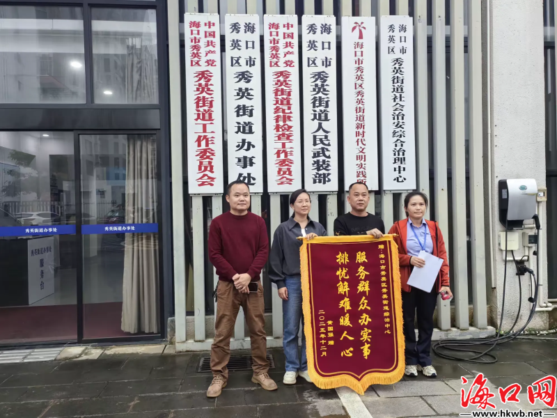 海口网12月7日消息(记者谢昀惠 特约记者陈创淼)“太感谢了,没想到赔偿款能那么快就协商下来了。”近日,居民黄某将一面印着“服务群众办实事排忧解难暖人心”的锦旗,送到了秀英区秀英街道综治中心。这是秀英区秀英街道综治中心多措并举提升群众满意度的一个缩影。