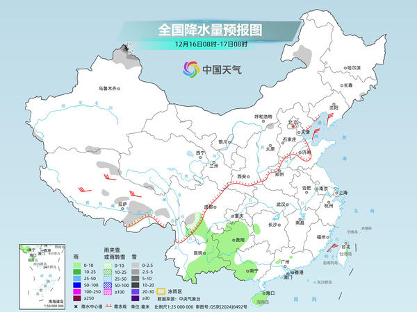 后天,内蒙古东北部、黑龙江中北部、新疆北部和南疆西部山区、甘肃河西等地部分地区有小到中雪或雨夹雪,其中,新疆沿天山地区和伊犁河谷局地有大到暴雪。湖南南部、福建东部和南部、西南地区南部、广西西南部、广东东部和南部、海南岛东部、台湾岛东部等地部分地区有小到中雨,其中,广东东部局地有大雨。