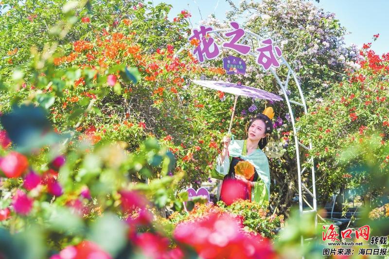 12月21日,“三角梅赏花周”在琼山区红旗镇边洋村三角梅共享农庄开幕。图为市民游客在此打卡拍照。记者 苏弼坤 摄