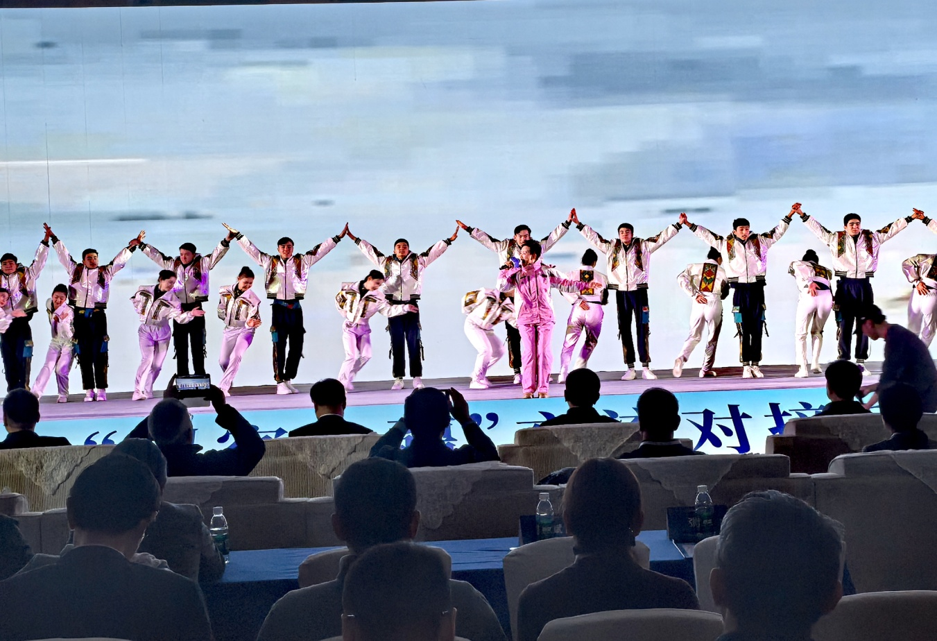 活动当日的热场舞蹈《冬季到新疆来滑雪》。(薛玲摄)