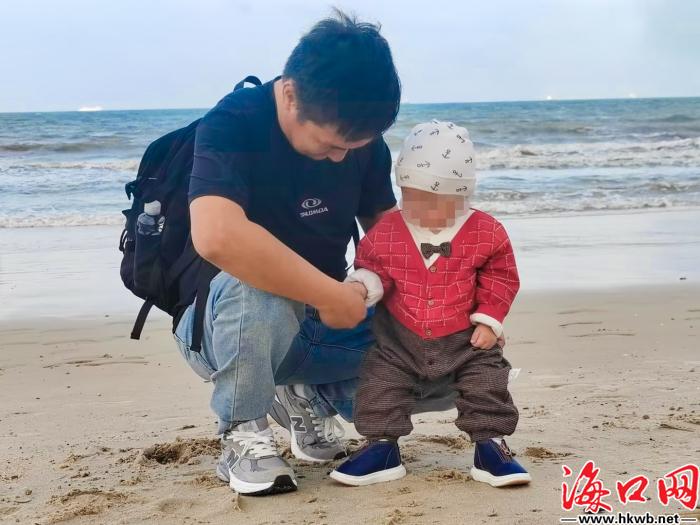 家属与小德尼在海口的假日海滩。(海南现代妇女儿童医院供图)
