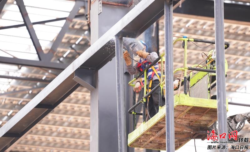 12月23日,在海口江东新区临空经济区,海南国际智慧物贸云港项目现场一派繁忙的施工景象。