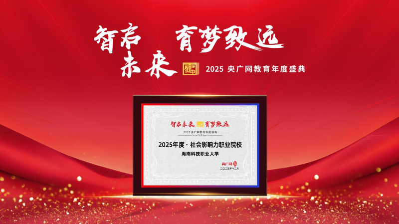 2025年12月26日,央广网2024“声彻中国”教育年度盛典在北京举行,海南科技职业大学荣膺“2025年度·职教榜样品牌”“2025年度·社会影响力职业院校”。海南科技职业大学党委宣传部部长叶霖嘉参会。