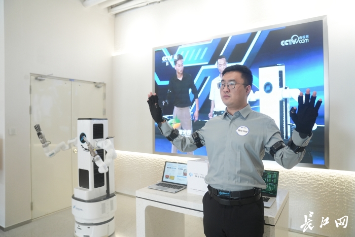 元生代2025创新分享会现场,武汉灏存科技有限公司工程师操作“机械手”。记者彭年 摄