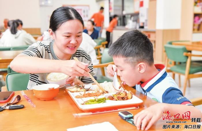 居民在琼山区府城街道北官社区的社区食堂用餐。记者 苏弼坤 摄