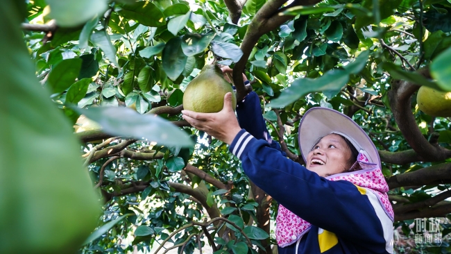 △金柚成为南福村乡亲们的致富果。(总台记者李晋拍摄)