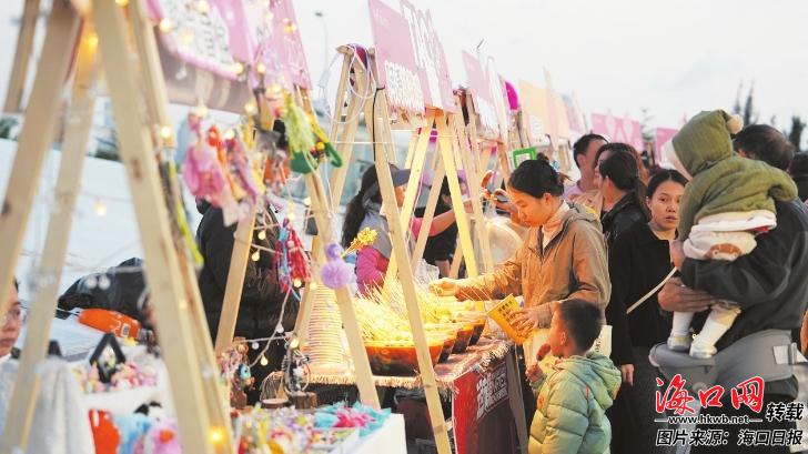 1月1日晚,市民游客在跨年市集购买心仪的物品。记者 杨忠凯 摄